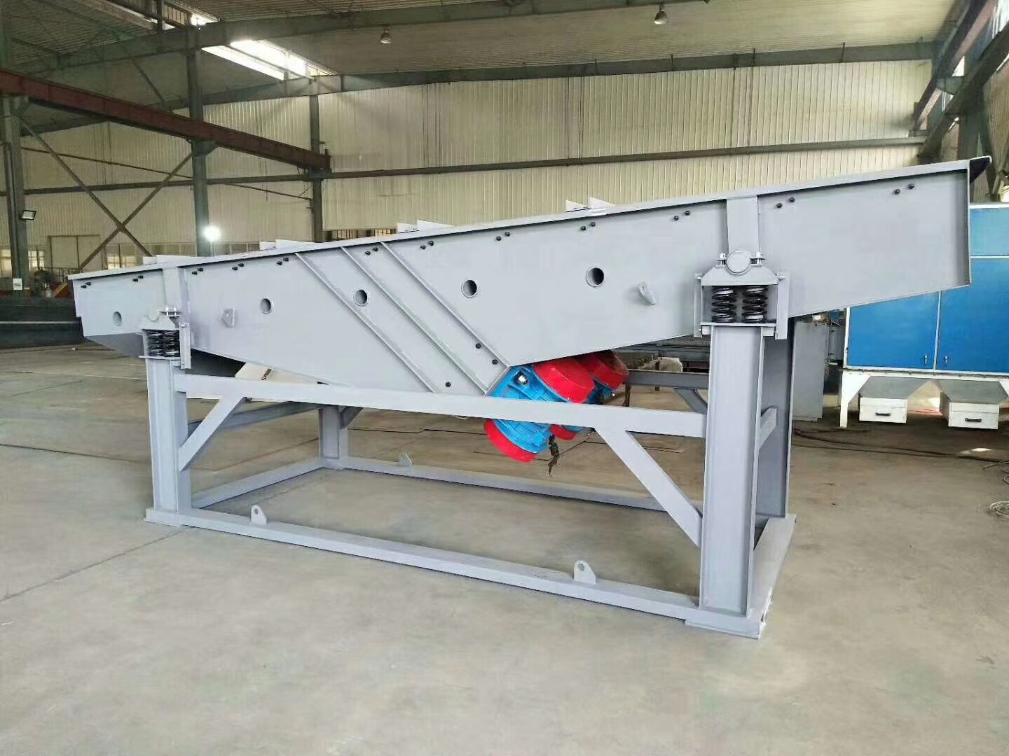 機制砂的生產是由制砂生產線生產的,這就要求機制砂振動篩既能適配生產線,又能滿足生產線需求量大的處理量,篩分效率和設備的有效篩分面積有直接聯系,有效篩分面積越大,振動篩的篩分效率越高。